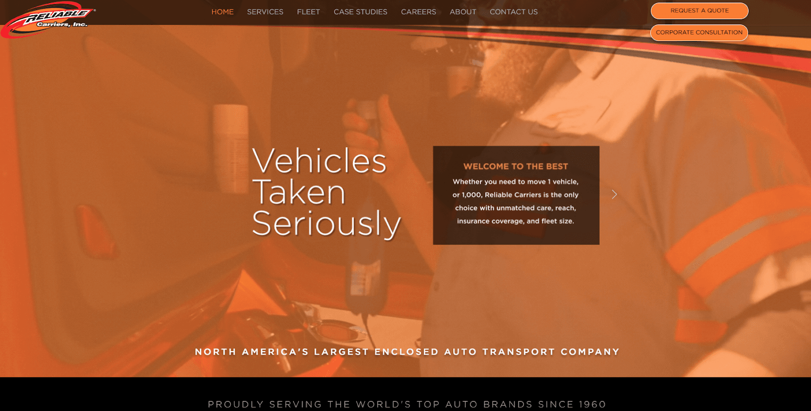Reliable Carriers is the largest enclosed auto transport company in North America, operating since 1960. They maintain a massive fleet of over 400 specialized tractor-trailers across the United States and Canada. As a direct carrier, they handle every part of the move without using middleman brokers.