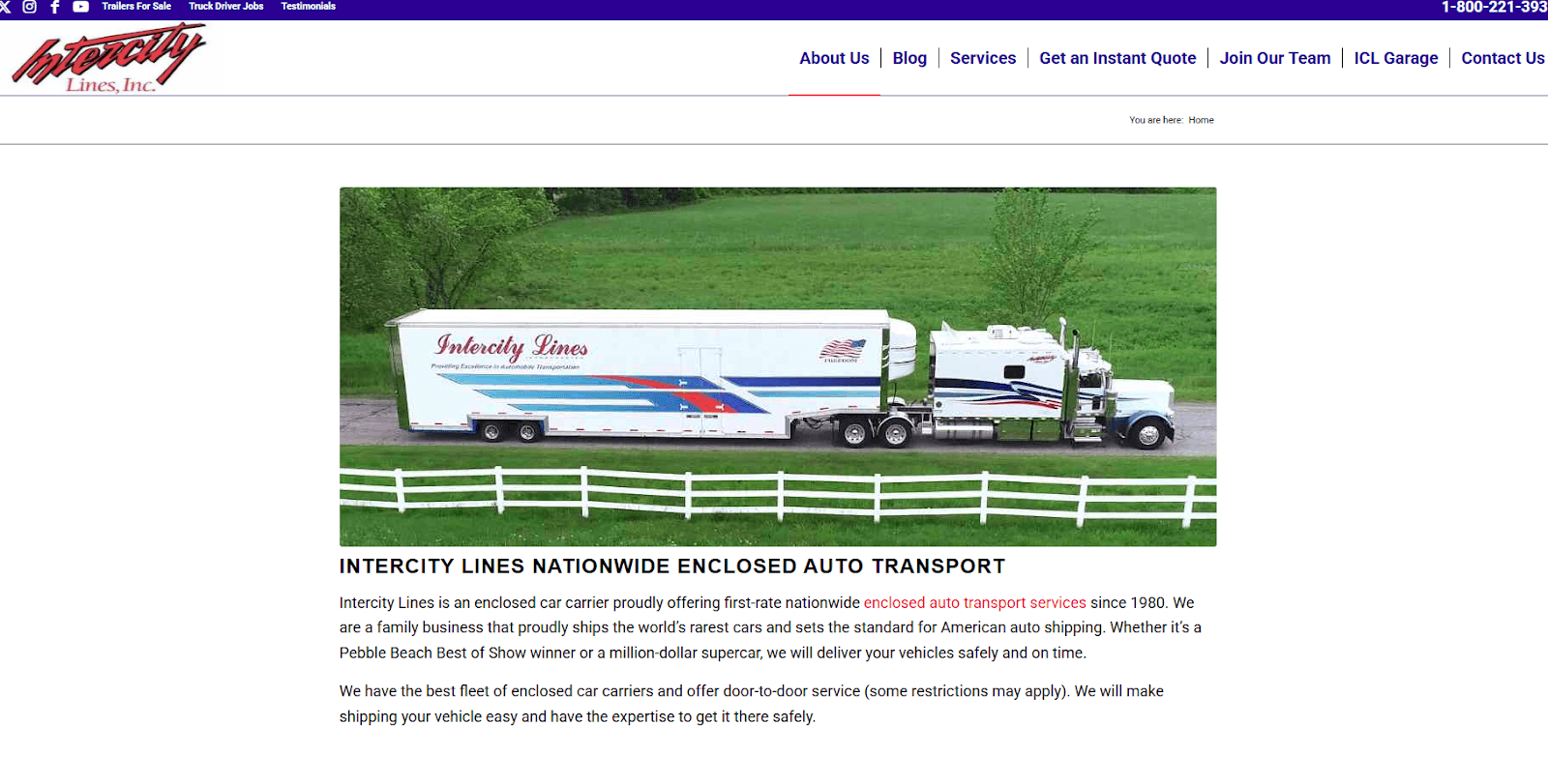 Intercity Lines is a family-owned carrier that has specialized in high-end enclosed transport since 1980. They operate as a direct asset-based carrier, meaning they own their entire fleet and never broker out your order. The company is famous for building its own custom trailers in-house to ensure maximum vehicle safety.