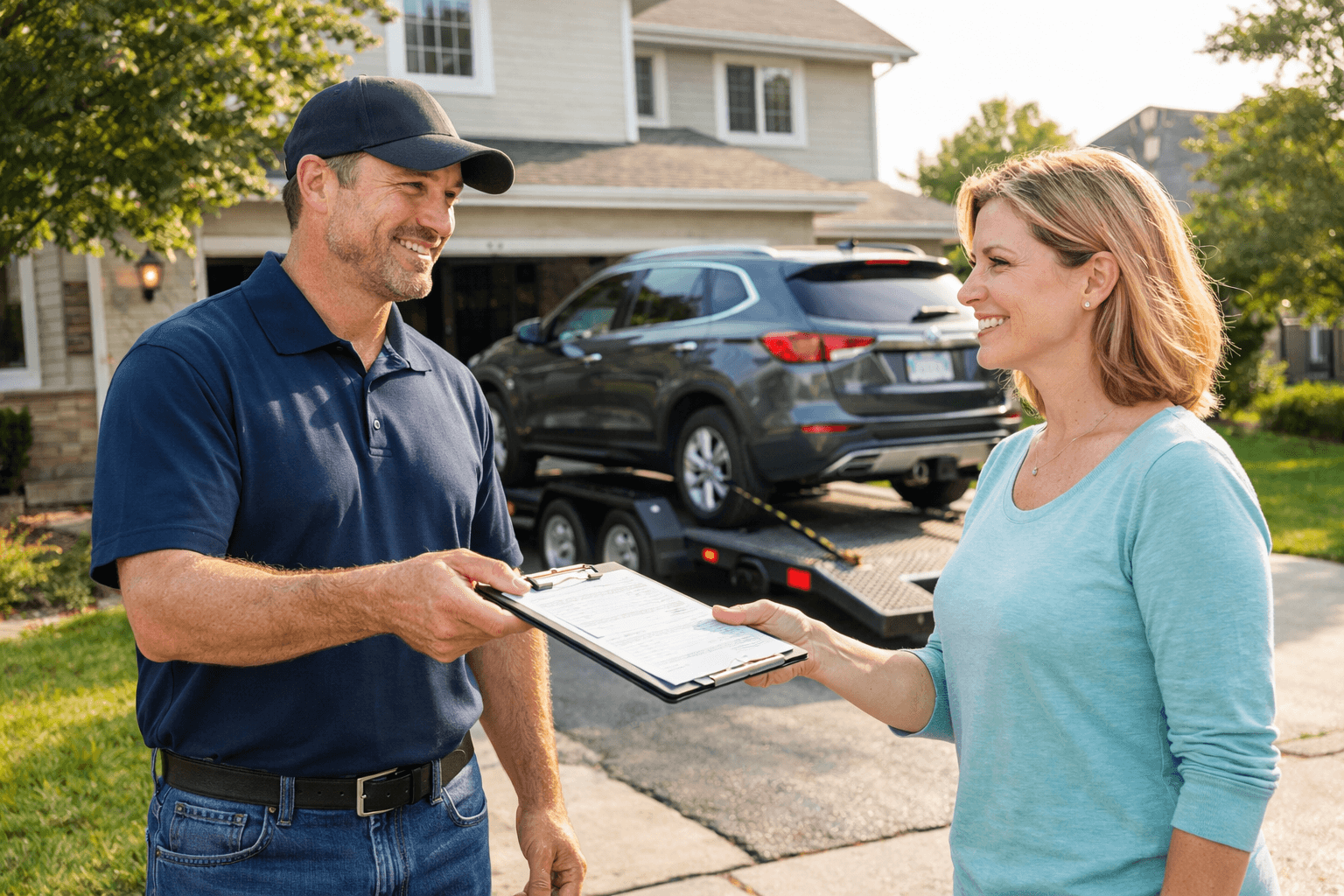 You get the convenience of having a driver come directly to your home. In a real scenario, the carrier calls you to coordinate a specific pickup window. They inspect the vehicle with you and sign a Bill of Lading before loading.