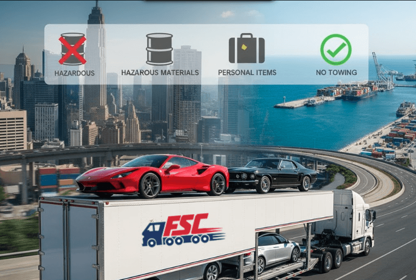 Personal Items: Carriers generally prohibit shipping a car with belongings because of weight limits and FMCSA regulations.