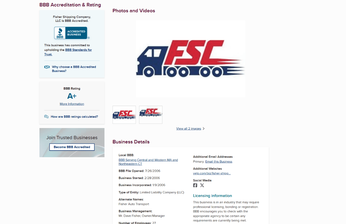 Fisher Shipping Company operates as a national auto transport broker based in Auburn, Massachusetts. Since 2006, they have moved over 100,000 vehicles for dealerships, manufacturers, and private individuals.