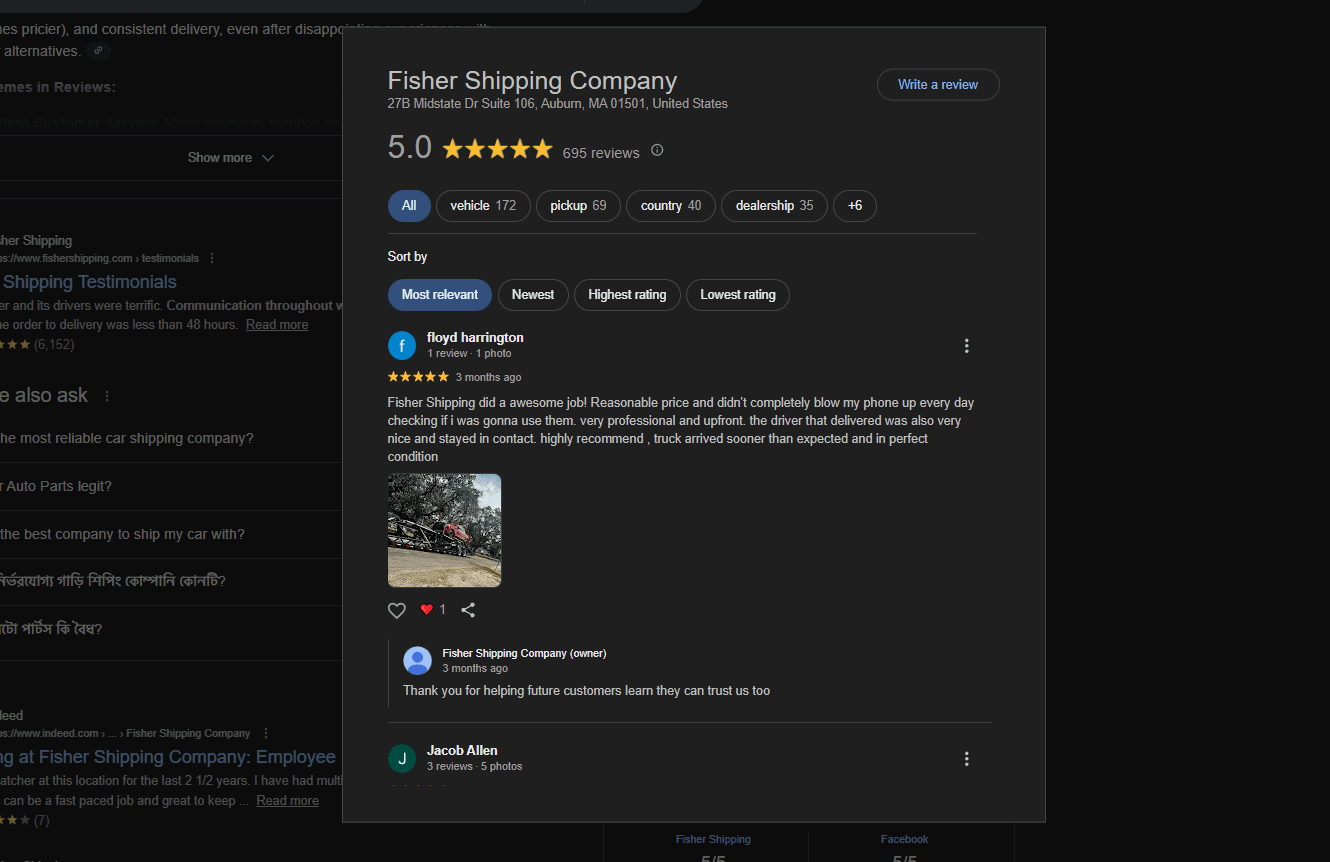 This Fisher Shipping Company Review identifies a consistent theme: you get what you pay for. While their quotes are often higher than the industry average, customers emphasize that the lack of hidden car shipping fees makes the total cost fair.