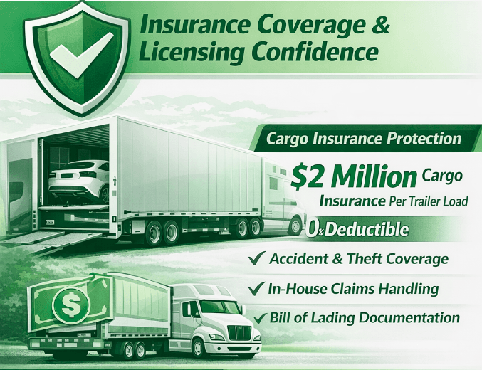 The coverage is comprehensive, protecting against transport accidents, theft, and vandalism. However, you are responsible for removing personal items, as these are not covered by the carrier's policy. It is also your duty to ensure the car is clean so the driver can perform a detailed pre-trip inspection.