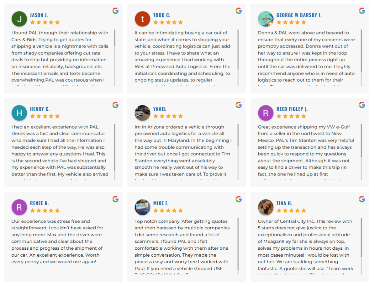 Transparency: Unlike brokers who might hide the true cost of car shipping, PAL is praised for fair, all-inclusive pricing.