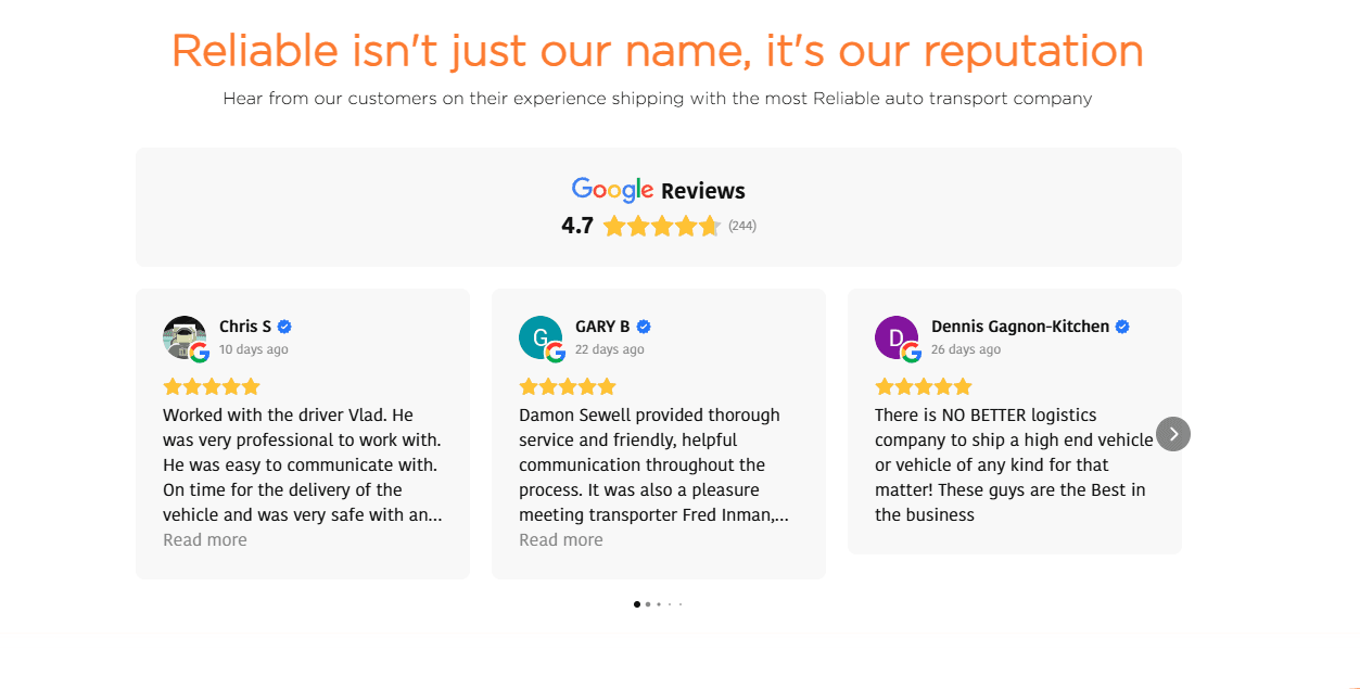 Reliable Carriers Inc stands out from competitors because it is a non-brokered carrier. You work directly with the team that owns the trucks and handles your car.