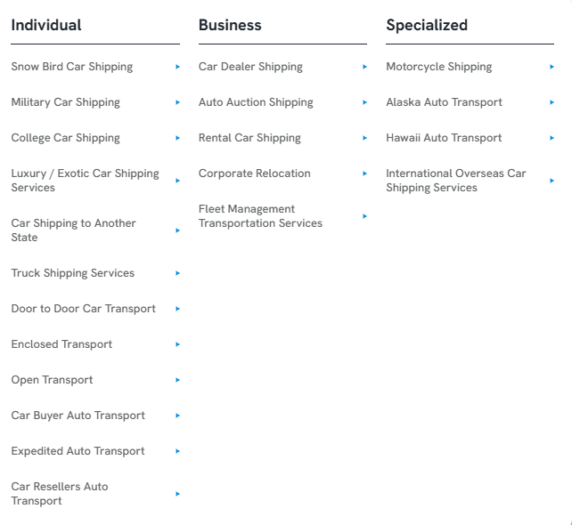 You can ship various vehicles, including Standard sedans and SUVs, Luxury and exotic cars, Classic vehicle shipping, Inoperable units (non-runners), etc.