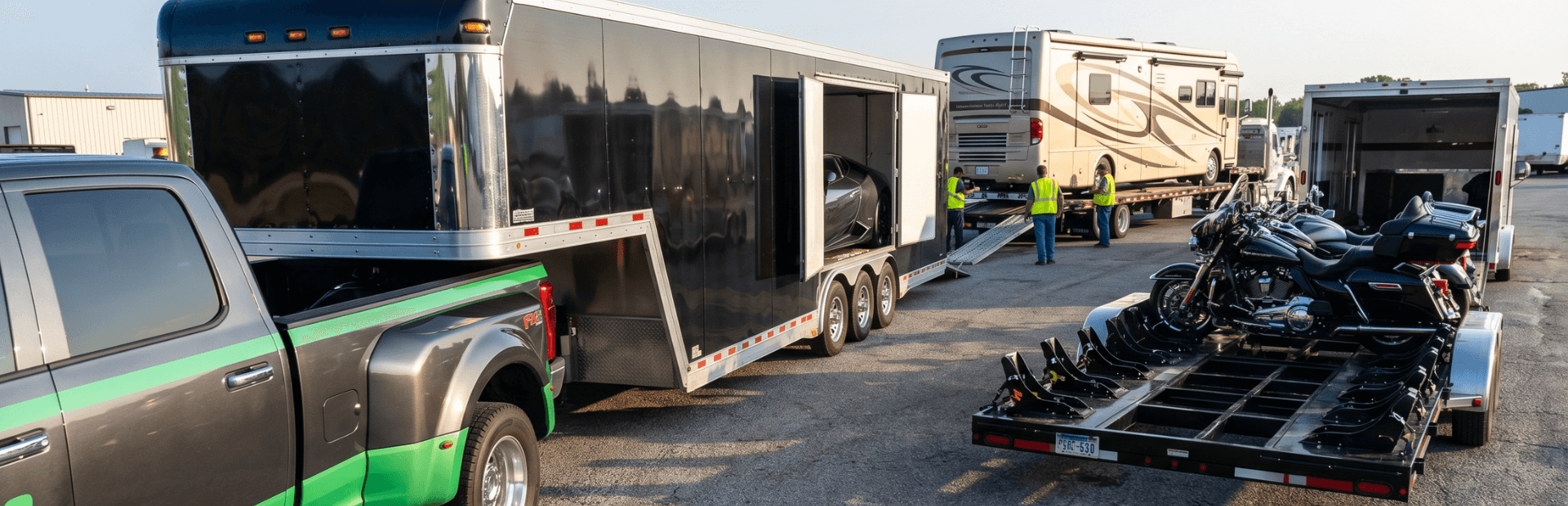 Trailer Type: You can choose between open motorcycle-specific trailers or fully sheltered, multi-bike enclosed units.